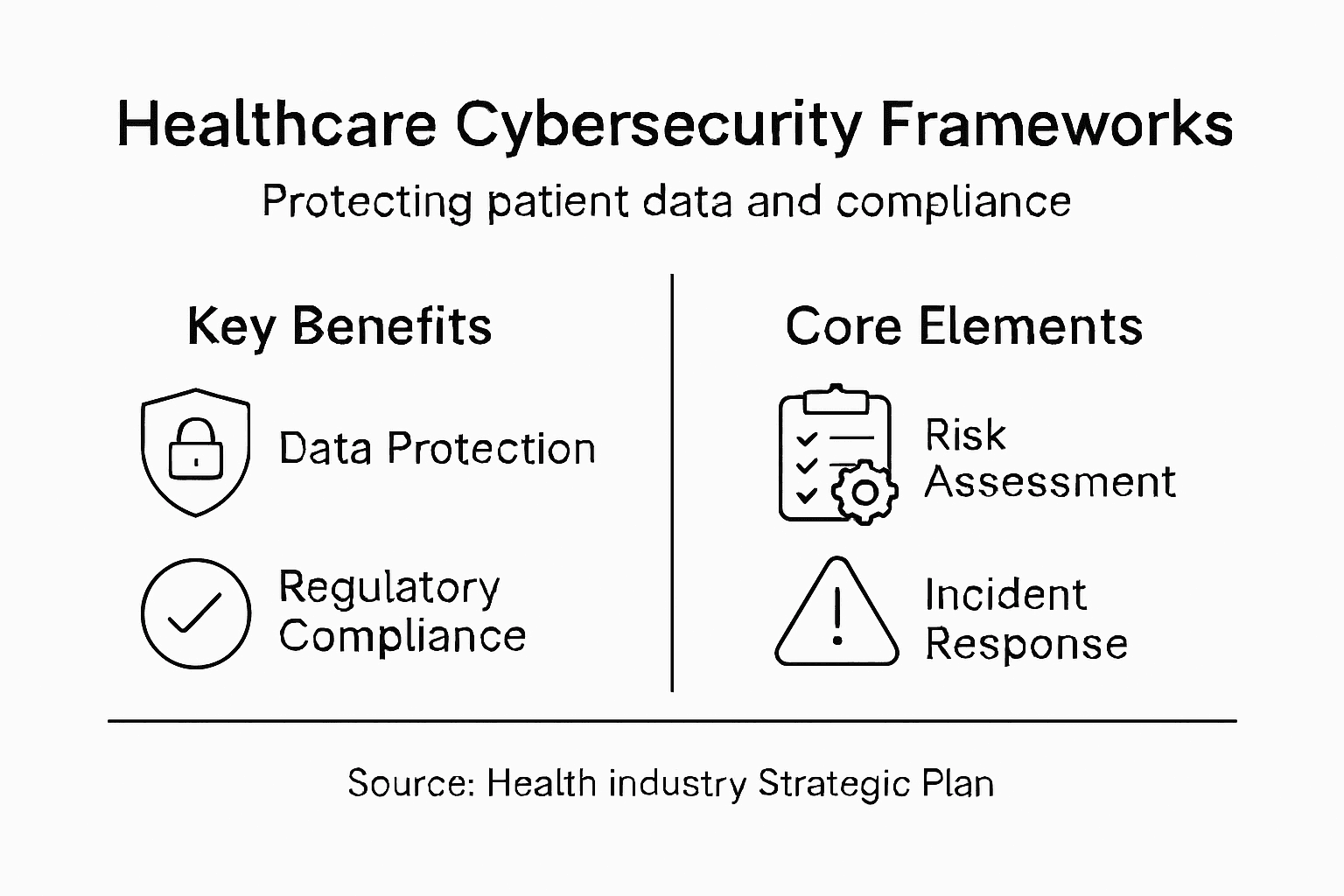 Below is an overview of how cybersecurity frameworks support healthcare risk management: