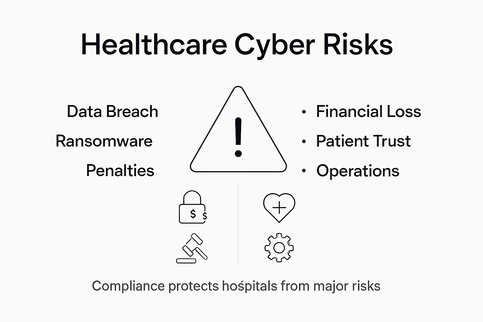 What risks do healthcare organizations face due to cybersecurity noncompliance?
