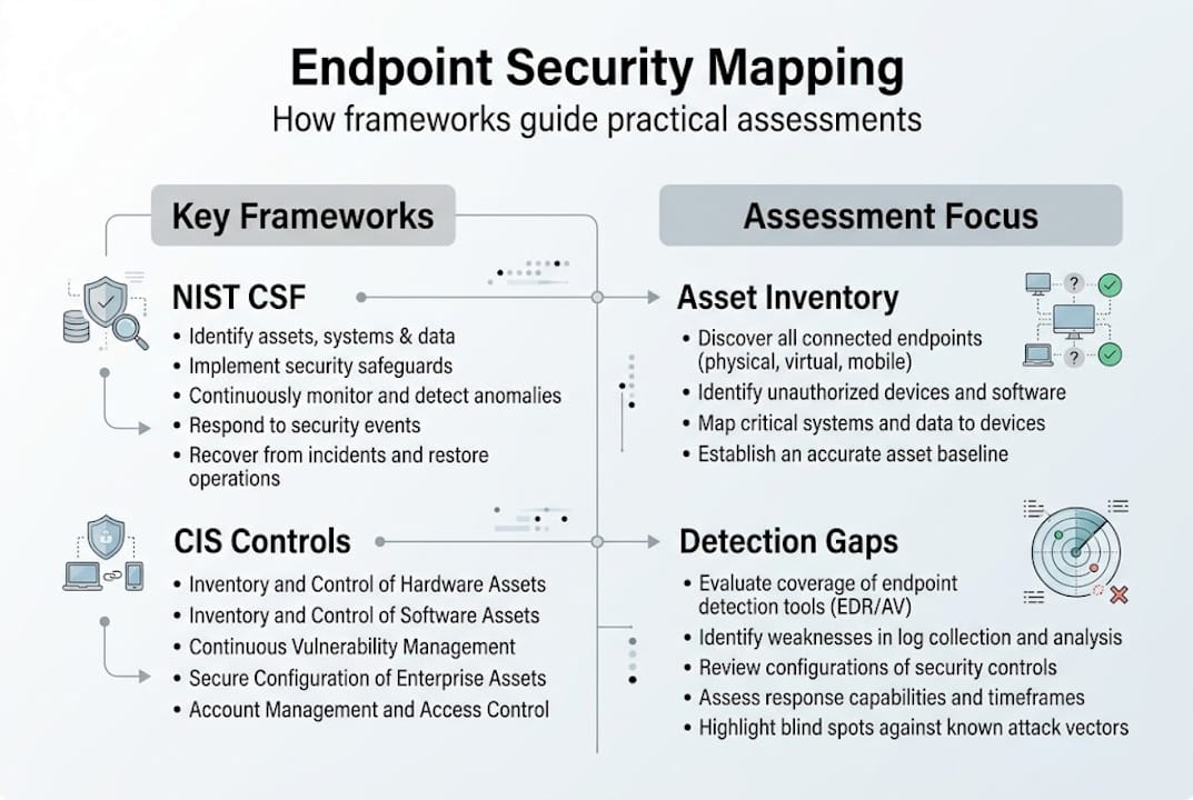 - Framework alignment is mandatory: Map endpoint controls explicitly to NIST CSF, CIS Controls, or ISO 27001.