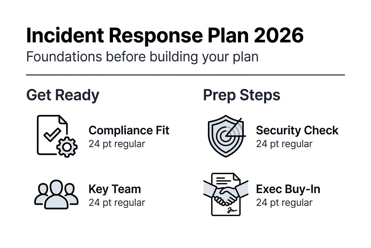 Before creating your incident response plan, establish critical foundations that determine success. Structured preparation includes understanding regulatory frameworks, assessing current security posture, and organizing cross-functional teams before plan development.