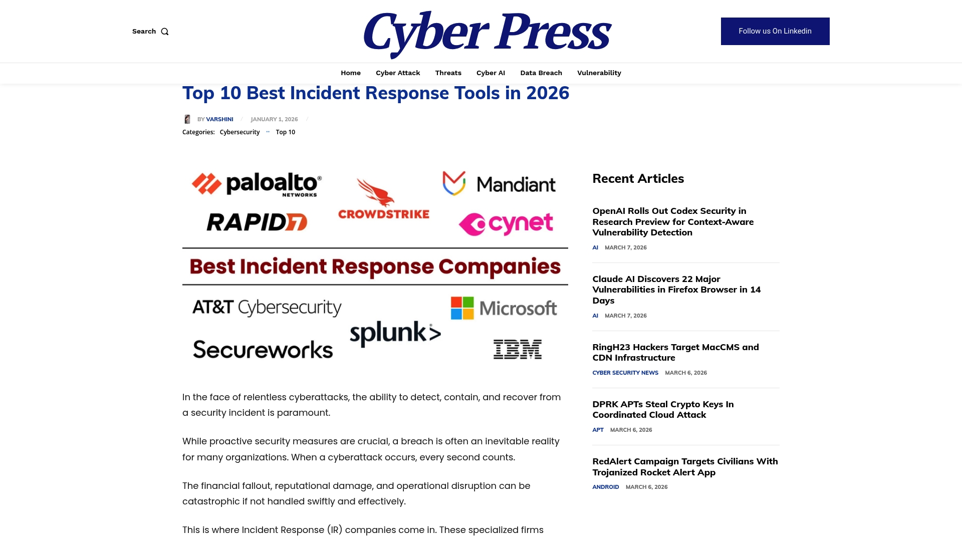 | Top 10 Incident Response Tools | Digital forensics, threat intelligence, proactive and reactive incident management | Global reach, comprehensive services, threat mapping | Premium pricing, reliance on automated platforms | Medium-large organizations in regulated industries |