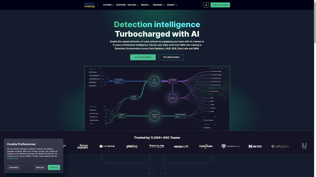 SOC Prime combines a threat detection marketplace with AI-assisted detection engineering to help SOC teams maintain up-to-date detections and automate hunting workflows. Trusted by over 11,000 SOC teams, it suits organizations that require rapid rule deployment and continuous detection updates.