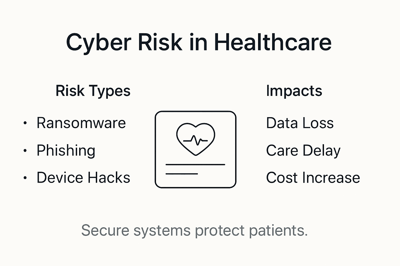 | Understanding Cyber Risk | Cyber risk in healthcare includes vulnerabilities that can impact patient safety, operational continuity, and institutional reputation. Organizations must recognize the interconnected nature of these risks to implement effective protection strategies. |